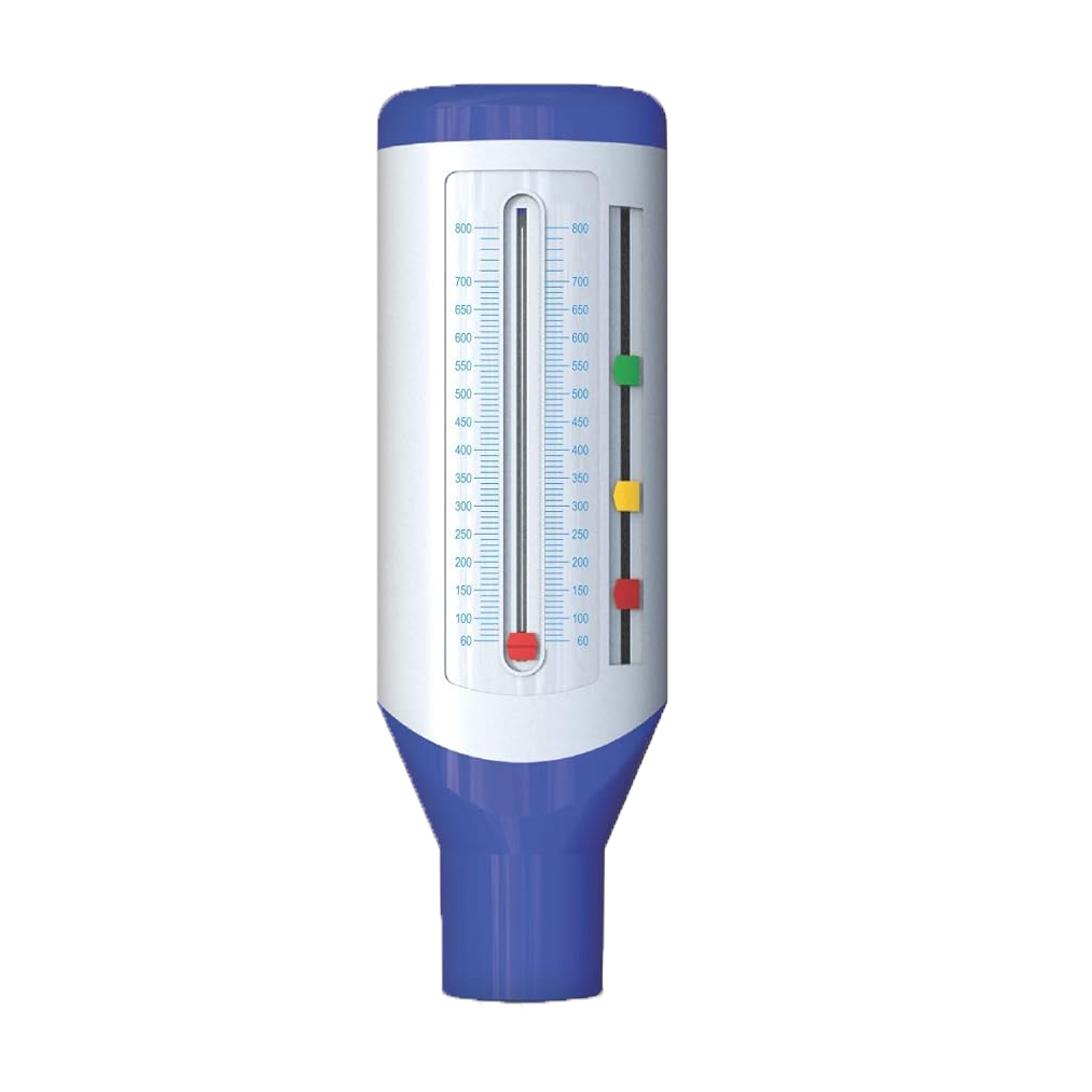 A Peak Flow Meter measures air flowing out of the lungs and can reveal narrowing of airways well in advance of an asthma attack.