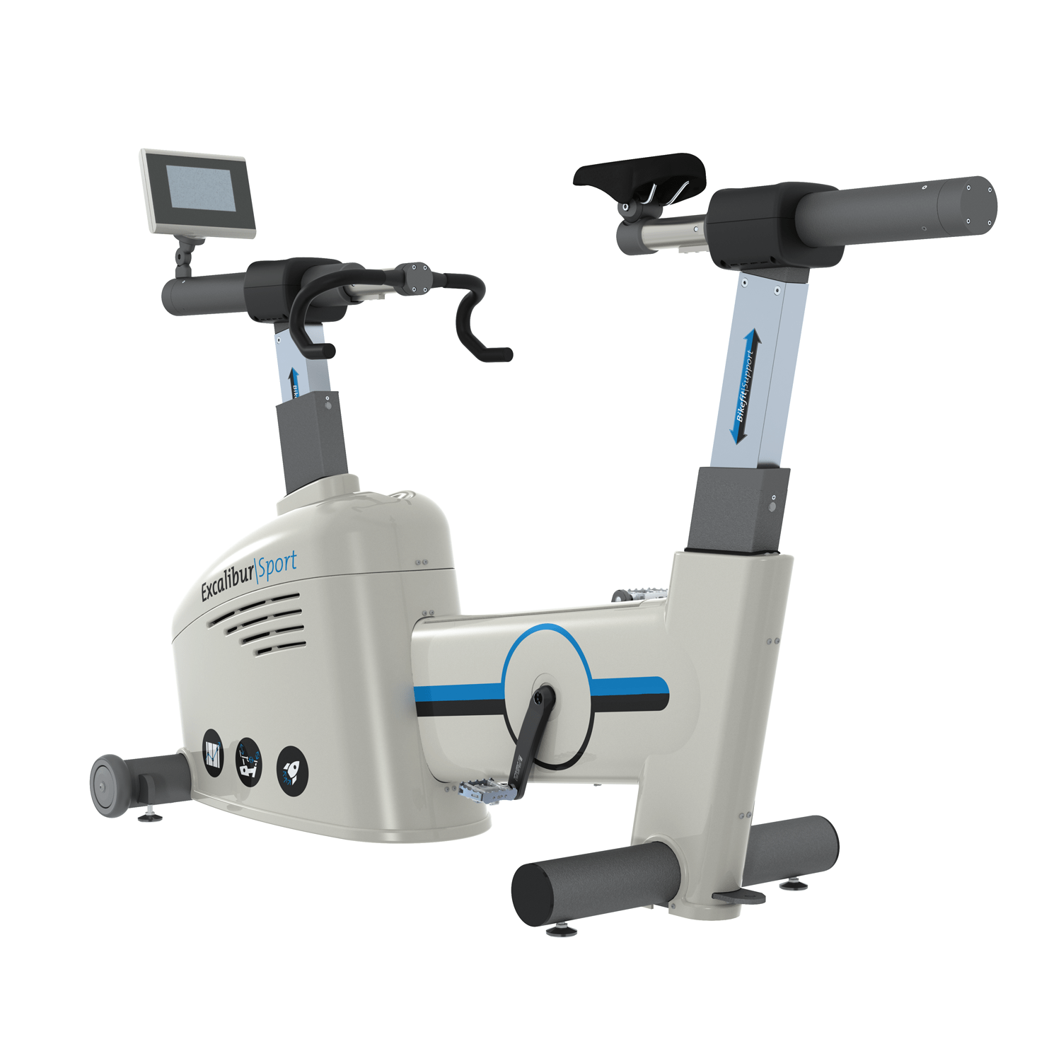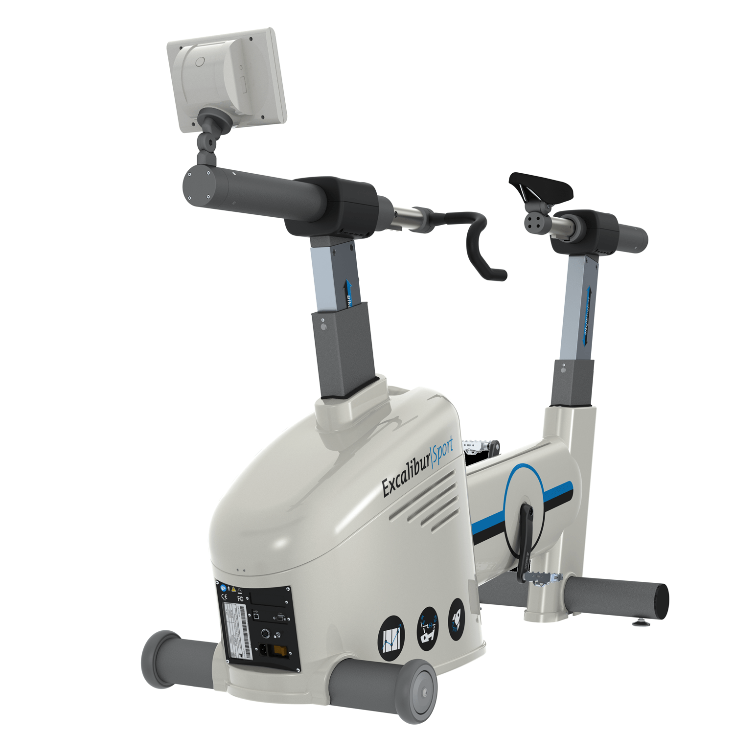 This Excalibur sport has built-in modified strain gauge technology that measures forces exerted on the pedals during exercise and is supplied with angle detection. Independent measurements of forces in both left and right crank are possible. Wireless transmission of the measured forces to the PC by bluetooth.