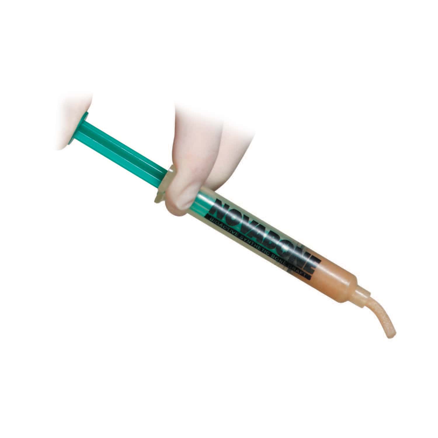 NovaBone is packaged in sterile thermoformed packs, as well as syringes for controlled delivery of bone graft.