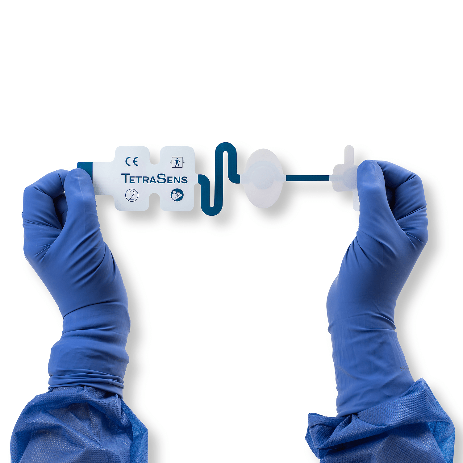 TetraSens electrode array has two proximal stimulating electrodes, one recording electrode and one reference electrode. The application is easy and quick. TetraSens electrode array is for single-patient use in order to avoid cross contamination. The electrodes can be applied on either hand, with the stimulation electrodes over the ulnar nerve at the wrist and the evoked response recorded from any of the hand muscles; typically, either the muscle at the base of the little finger (abductor digiti minimi muscle), or, more commonly, from the muscle at the base of the thumb, adductor pollicis muscle. TetraSens can also be placed on the FDI muscle (first dorsal interosseous). When the hand is inaccessible, the posterial tibial nerve (flexor hallucis brevis muscle), can be used for NMT monitoring.