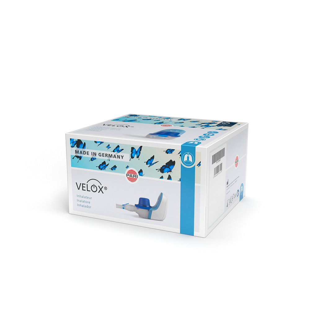 The VELOX® makes life easier by shortening inhalation times, thus allowing more freedom to enjoy life. Its ergonomic design and small number of components make it easy to use, whilst its extremely quiet operation guarantees discreet treatment. Optional battery operation enables maximum mobility, and the small size and light weight of the device make it ideal for use away from home.