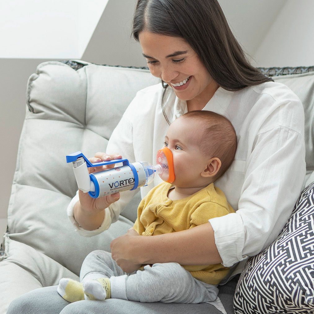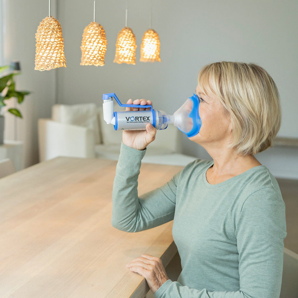 The VORTEX holding chamber means coordinating simultaneous release and inhalation is no longer necessary, as the medication is first sprayed into the holding chamber and then inhaled from there. That makes inhalation easier and the active substance always reaches where it is needed.